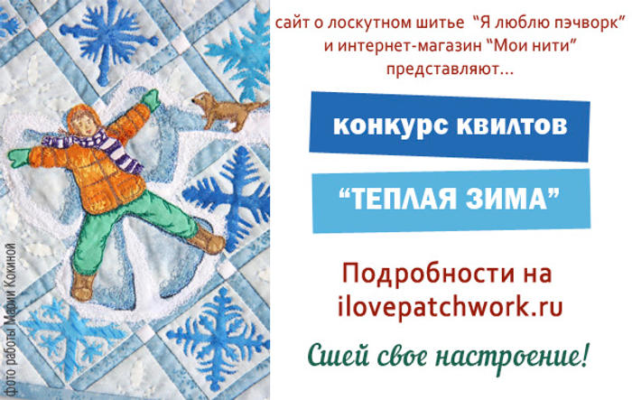Мы решили объединить любовь к зиме, празднику и пэчворку и предлагаем участникам создать зимний квилт. Пусть он будет традиционным или современным, с ручной или машинной стежкой, большой или маленький, главное, чтобы он был сделан с любовью и теплом.